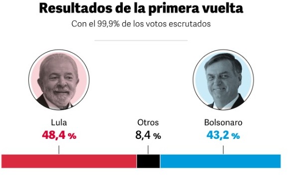 En la primera vuelta las encuestadoras erraron notoriamente en la diferencia anticipando una victoria por 2 cifras para el ex presidente. Pero el resultado si bien dejó adelante a Lula con 48,4% de los votos, Bolsonaro reunió un importante 43,2% de los sufragios, ganando fuerza parlamentaria y en varios estados importantes.