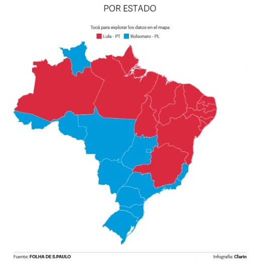 En el Sudeste, en cambio, dijo, el presidente ganó en la 1ª vuelta, va adelante y hay indicios de que podría reaccionar en Minas Gerais, único estado en el que quedó detrás de Lula el 2 de octubre. “Pero, en fin, lo que se puede decir con certeza es que la disputa muestra una aproximación de los 2 finalistas”, dijo.