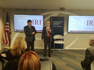 Posteriormente, el grupo se dirigió al International Republican Institute. Allí pudieron conversar con el Director de la División para América latina y el Caribe, Stephen Johnson; quien brindó un panorama sobre el trabajo del instituto en la región y sus perspectivas.